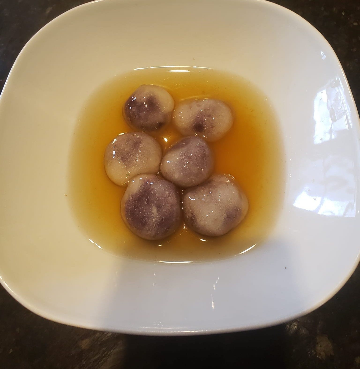 My daughter adds, “Be careful with the fillings. My tummy is judgy. But you can make the sesame rice dumplings. Those are yummy. And noodles without toppings.”